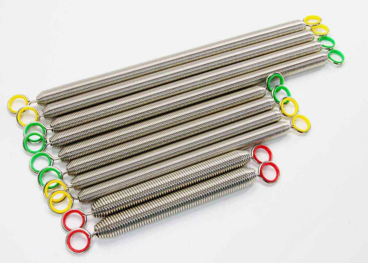 Our Pilates springs are crafted from high carbon steel (SWP-B), which is the most durable material available. They undergo special chemical anti-rust treatment and nickel plating, and we offer a four-year rust-proof guarantee. Our factory has been verified by SGS and ISO 9001. These Pilates reformer springs can pass CE and ROHS certification and are superior in terms of lifespan, anti-rust properties, strength, and durability.